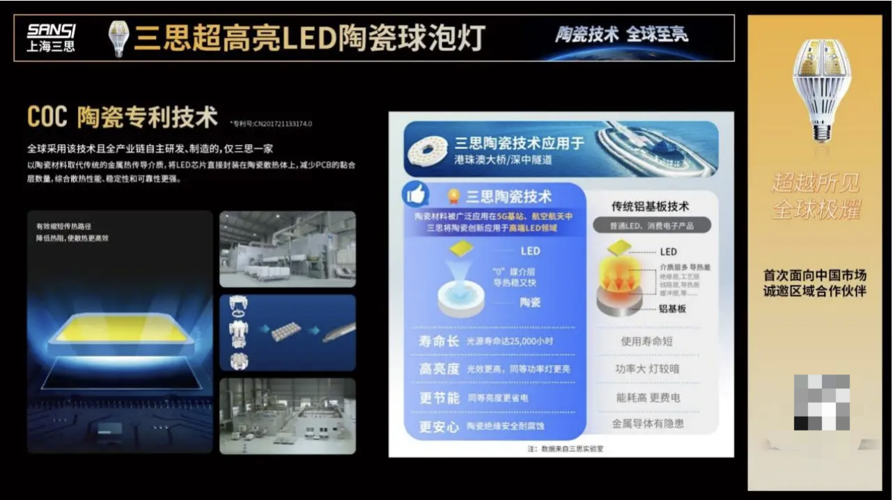 2025年10月13日,上海三思电子工程有限公司正式发布全球至亮10000流明级A21规格的LED陶瓷球泡灯等系列产品,以创新“陶瓷芯”技术引领照明产业升级。该产品采用三思COC陶瓷技术,在标准灯体规格下实现光通量突破性跃升。