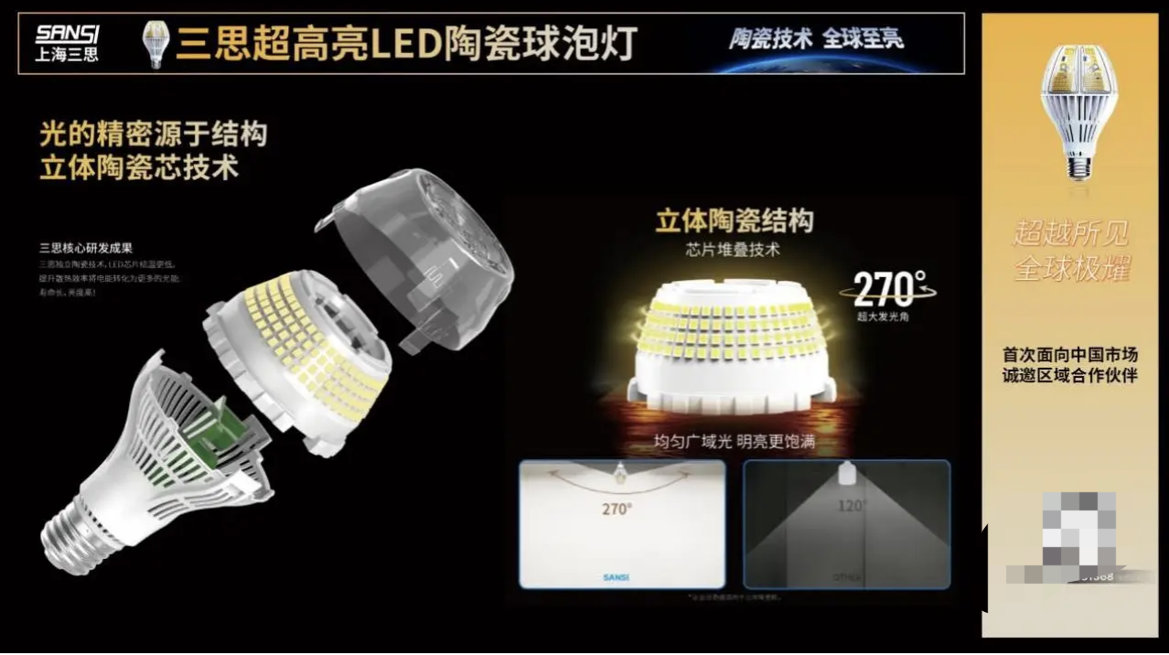 如今三思将这项独特核心技术创新应用于LED陶瓷球泡灯等光源上,将为中国光源与照明市场创造新的高度。