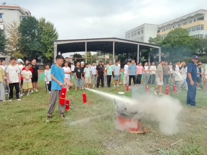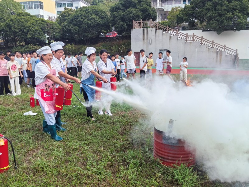 三都消防官兵现场讲解了火灾逃生要点、灭火器的正确使用方法等,并指导教职员工和全体学生进行灭火器实操演练。