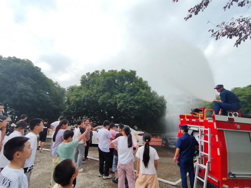 消防员们还带领师生近距离参观了消防车,介绍了高压水枪等专业设备,耐心讲解不同消防车的功能、各类装备的用途和操作方法。