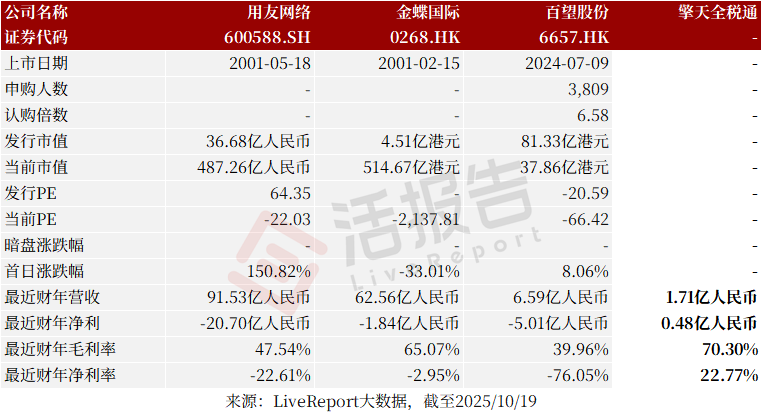 同行业IPO可比公司有:用友网络、金蝶国际、百望股份。