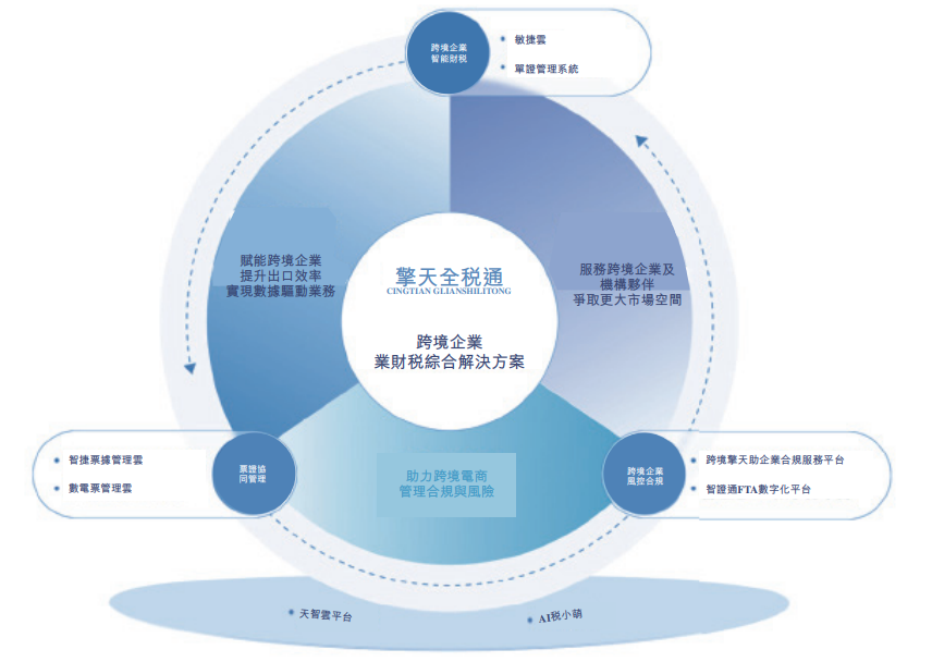 凭借逾10年的深厚行业积累,利用大数据、AI等先进信息技术,公司为跨境企业提供涵盖业务、财务、税务的全场景协同解决方案。通过模块化的产品矩阵,驱动业务数据贯通包括跨境企业智能财税、票证协同管理以及跨境企业风控与合规三大解决方案。