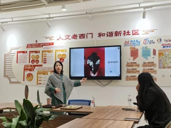 本次活动以“绳结承古韵 匠心赴新程”为主题,邀请非遗盘扣领域青年企业家、海派盘扣设计师李沐清担任主讲嘉宾,吸引到十余名对传统文化与新兴职业感兴趣的居民参与。