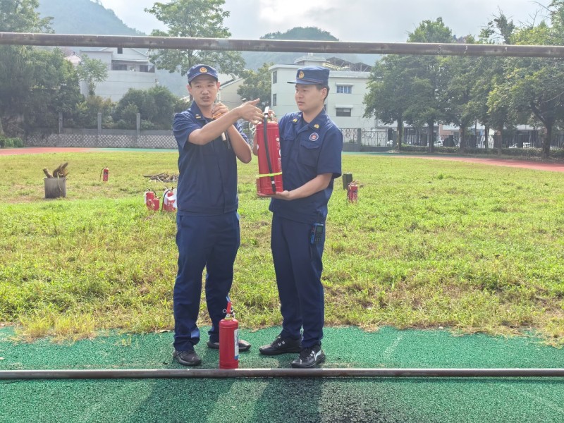 三都消防官兵现场讲解了火灾逃生要点、灭火器的正确使用方法等,并指导教职员工和全体学生进行灭火器实操演练。