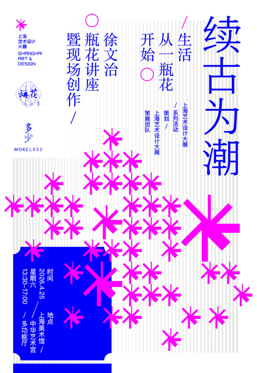 这场发生在上海美术馆的讲座与现场创作,既是“上海艺术设计大展”一次富有东方气质的延伸,也是徐文治持续实践“续古为潮”的一次清晰呈现。它让更多观众意识到,一瓶花的意义,远不止于观看;它所展开的,是一种关于生活、关于感受、关于中国美学如何继续生长的可能性。