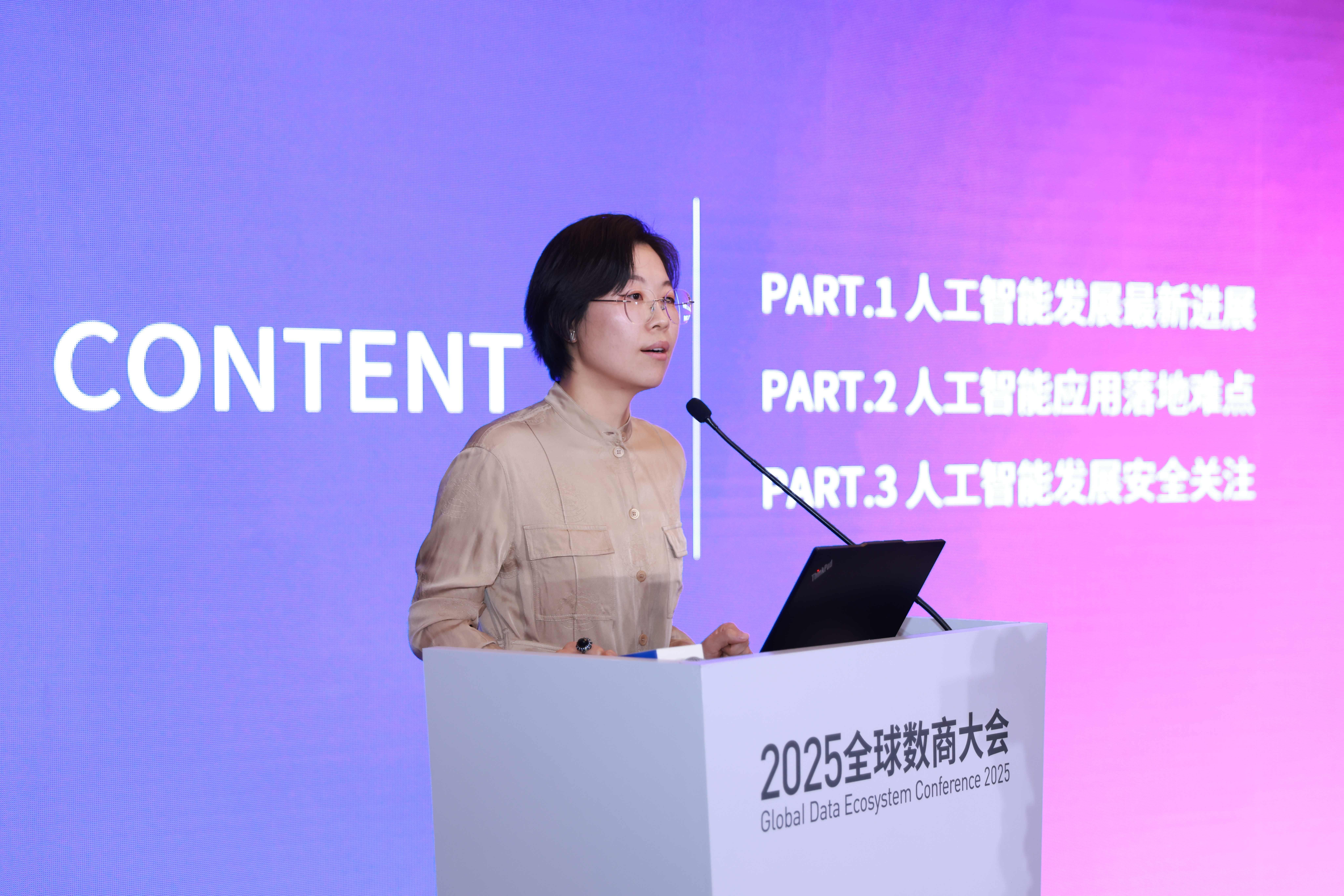 主旨演讲环节精彩纷呈,五位来自学术界与产业界的重磅嘉宾分享了前沿洞察与实践思考。中央财经大学中国互联网经济研究院副院长、国家数据专家咨询委员会委员欧阳日辉深入分享了构建产学研用协同创新的数字人才自主培养模式;北京中科闻歌科技股份有限公司副总裁赵菲菲从数据视角下人工智能安全与发展出发,分析了AI治理与发展的平衡之道;松应科技创始人兼CEO聂凯旋围绕“物理 AI 仿真与合成数据,加速具身智能模型场景化训练与落地”,揭示了利用创新技术破解AI落地难题的路径;并行科技高级副总裁、AI云事业部总经理赵鸿冰就“普惠算力平台建设,助力数智创新发展”阐述了算力基础设施建设的实践路径;联通数据智能公司数智产品部总经理潘登以“聚才筑基 科技赋能——联通数智实践与思考”为题,分享了中国联通在汇聚人才、夯实基础、科技赋能行业数智化转型方面的宝贵经验。