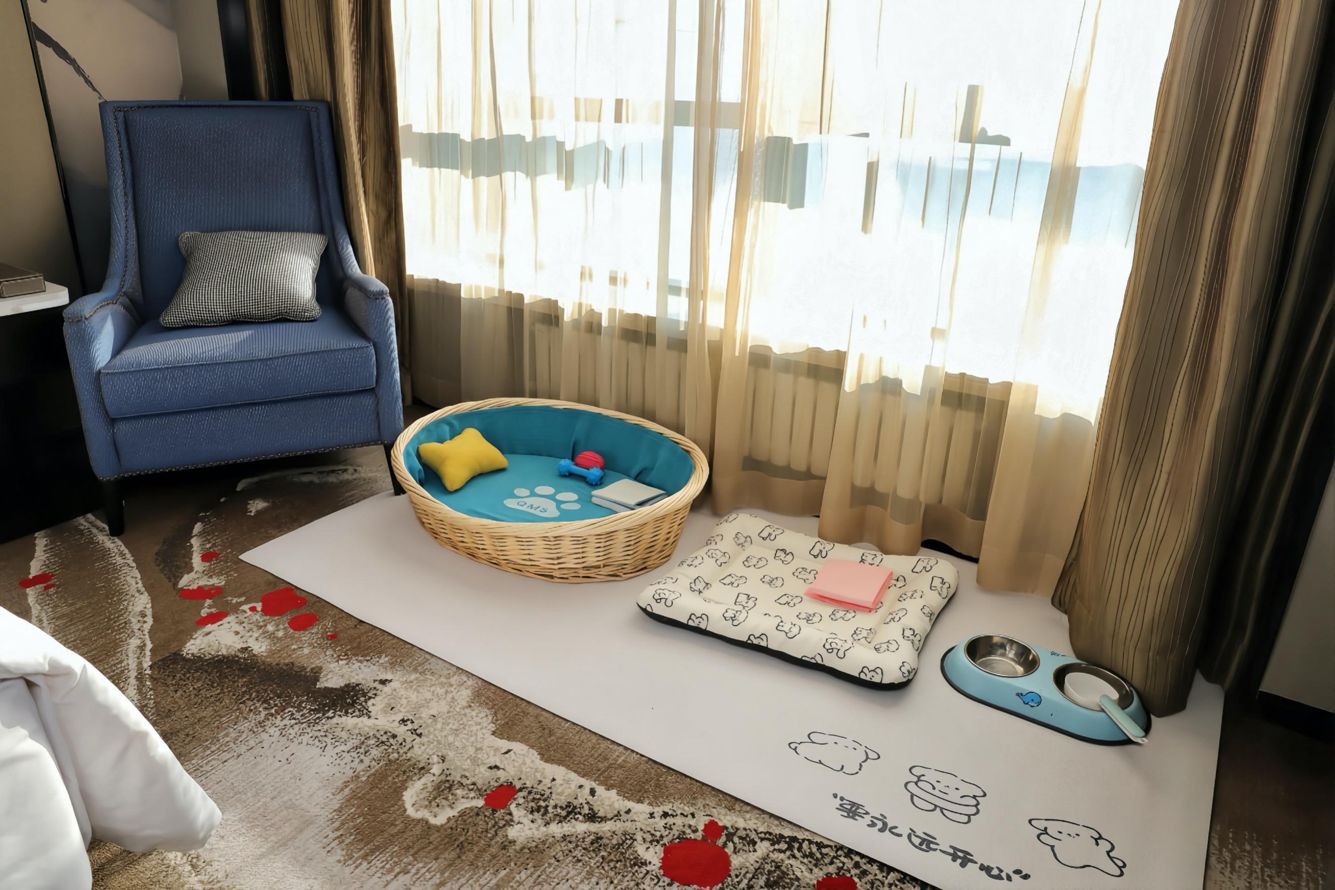 酒店推出的宠物房并非普通客房的简单改造,而是从宠物天性及主人需求出发,进行了全方位的贴心设计: