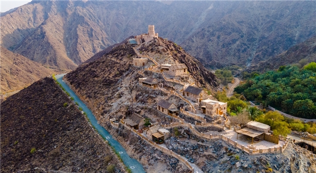 坐落在瓦迪希旱谷(Wadi Shie)考古遗址内的马克萨高地遗产村酒店,则呈现另一种与自然和历史融为一体的住宿体验。村落四周散落着古老部落定居的印记:公元前约2000年的碑文与壁画、300年历史的堡垒、古法建造的百年老屋,以及依靠古代灌溉系统滋养的农场。著名的“沙迦精选系列”(Sharjah Collection)在此打造的四星级精品酒店仅有7间传统山居风格的客房,让旅客沉浸式体验阿拉伯的生活。景观餐厅将山色引入室内,美食与美景兼得。