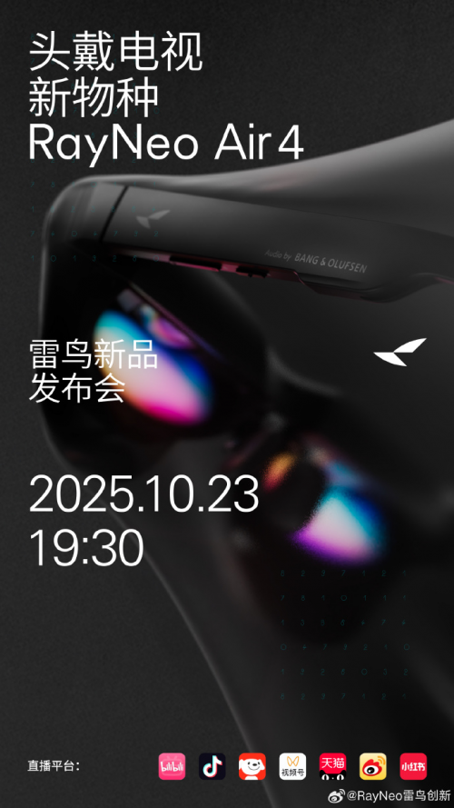 值得一提的是,同日雷鸟创新还官宣首款 HDR 观影眼镜 RayNeo Air4 将于10 月 23 日 19:30 举办新品发布会,王自如将首测体验 10.7 亿色彩带来的影院级画面。关于王自如的最终职业,或将在发布会上得到进一步揭晓。